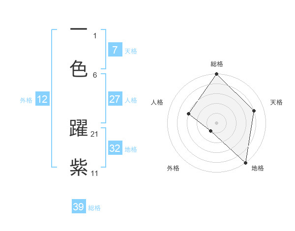 一色 躍紫さんの総格は39画の5点!