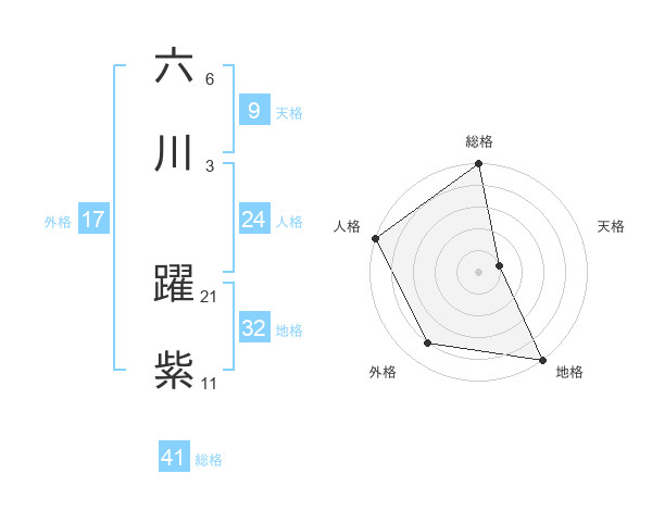 六川 躍紫さんを姓名の画数から五運を鑑定