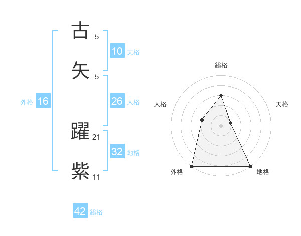 古矢 躍紫さんを姓名の画数から五運を鑑定