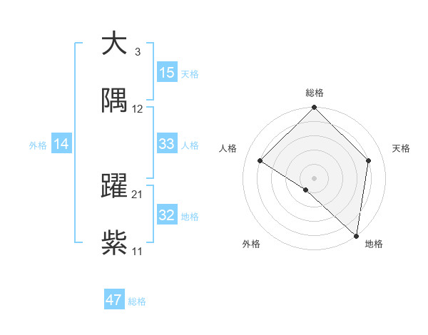 大隅 躍紫さんを姓名の画数から五運を鑑定