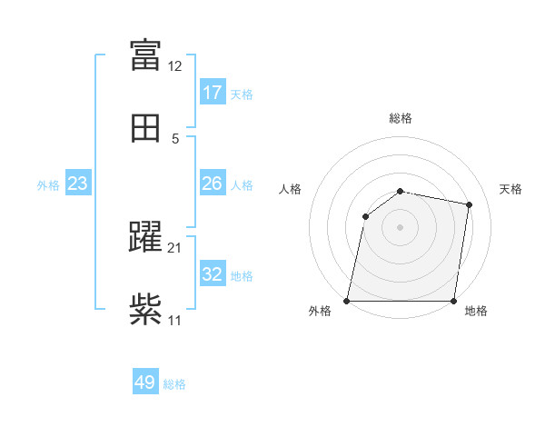 富田 躍紫さんの外格は23画の5点!