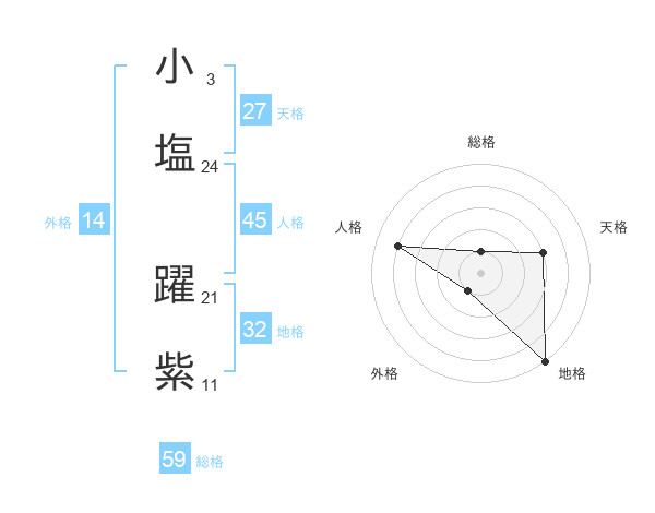 小塩 躍紫さんの地格は32画の5点!