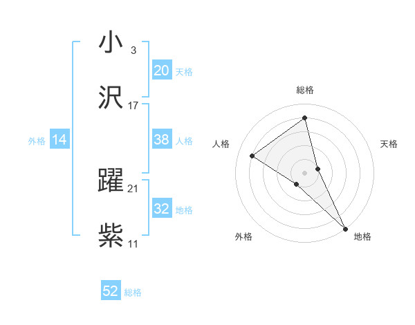 小沢 躍紫さんの総格は52画の4点!