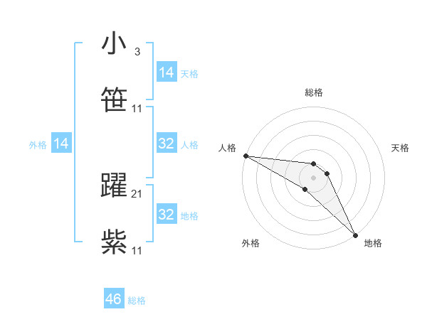 小笹 躍紫さんの天格は14画の1点!