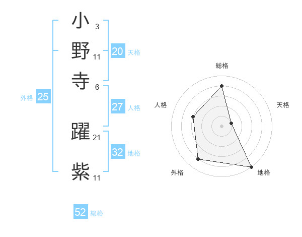 小野寺 躍紫さんの総格は52画の4点!