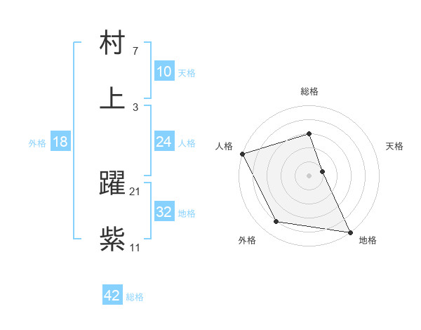 村上 躍紫さんの総格は42画の3点!