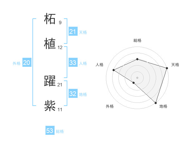 柘植 躍紫さんを姓名の画数から五運を鑑定