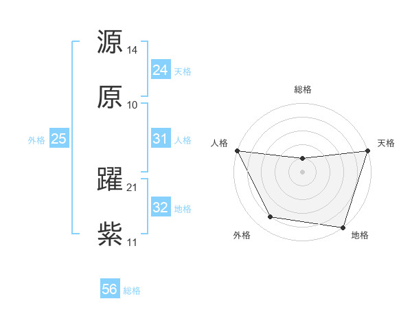 源原 躍紫さんを姓名の画数から五運を鑑定