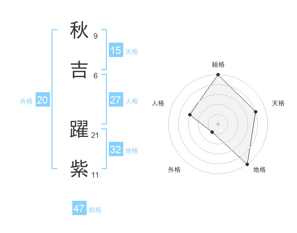 秋吉 躍紫さんを姓名の画数から五運を鑑定