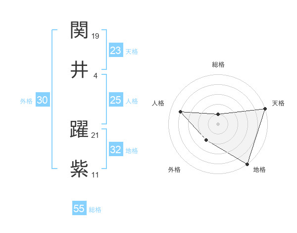 関井 躍紫さんを姓名の画数から五運を鑑定