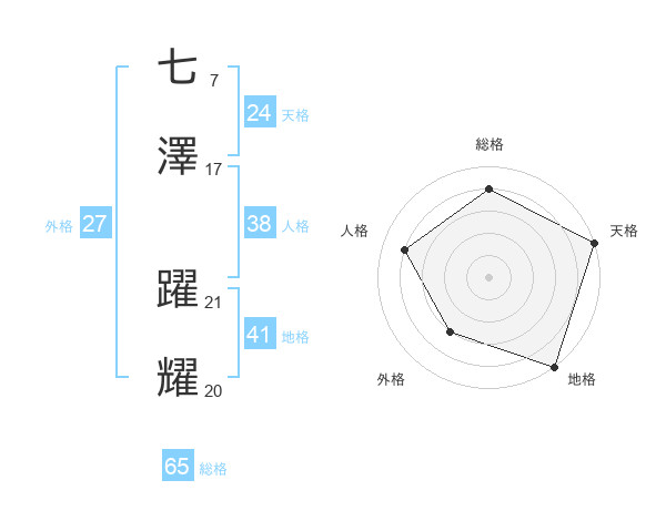 七澤 躍耀さんの総格は65画の4点!