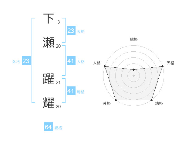 下瀬 躍耀さんを姓名の画数から五運を鑑定