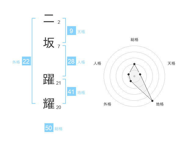 二坂 躍耀さんを姓名の画数から五運を鑑定