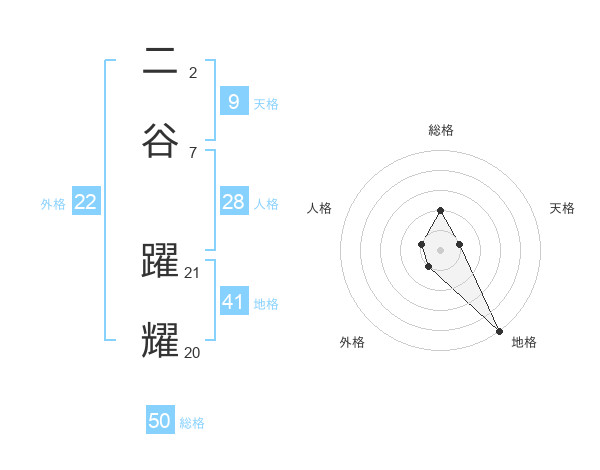 二谷 躍耀さんの外格は22画の1点!