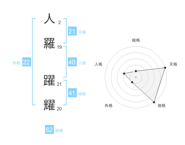 人羅 躍耀さんの天格は21画の5点!