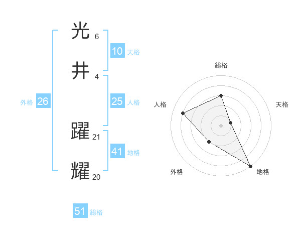 光井 躍耀さんを姓名の画数から五運を鑑定