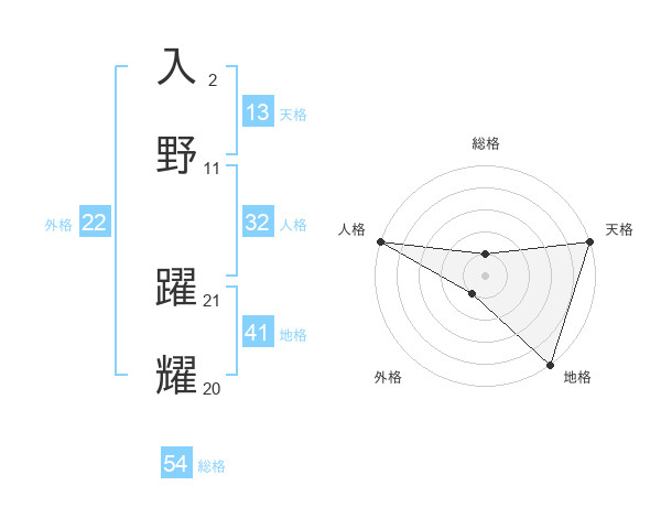 入野 躍耀さんを姓名の画数から五運を鑑定