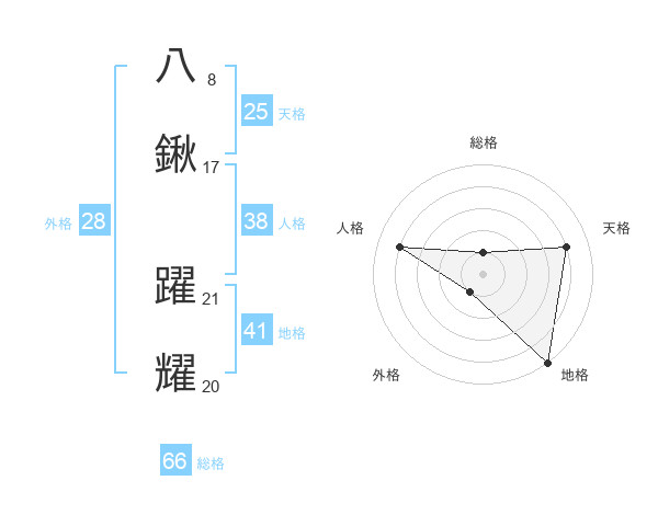 八鍬 躍耀さんの総格は66画の1点!