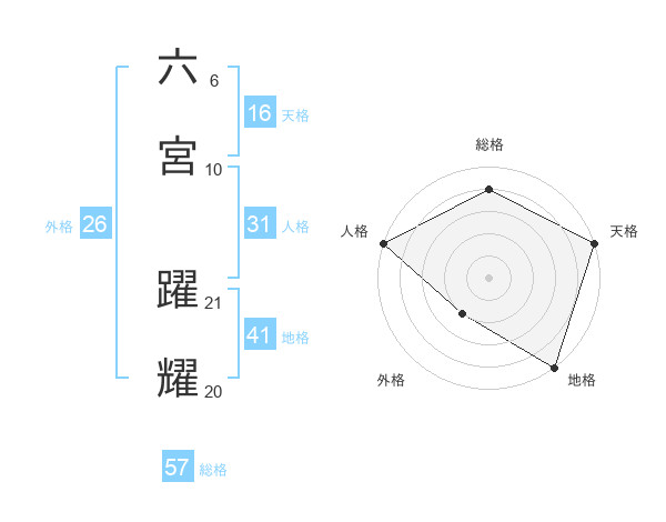 六宮 躍耀さんの総格は57画の4点!