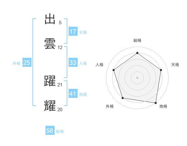 出雲 躍耀さんの総格は58画の4点!