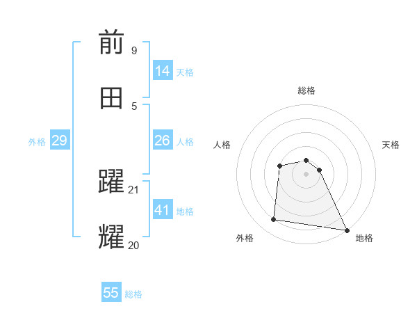 前田 躍耀さんを姓名の画数から五運を鑑定