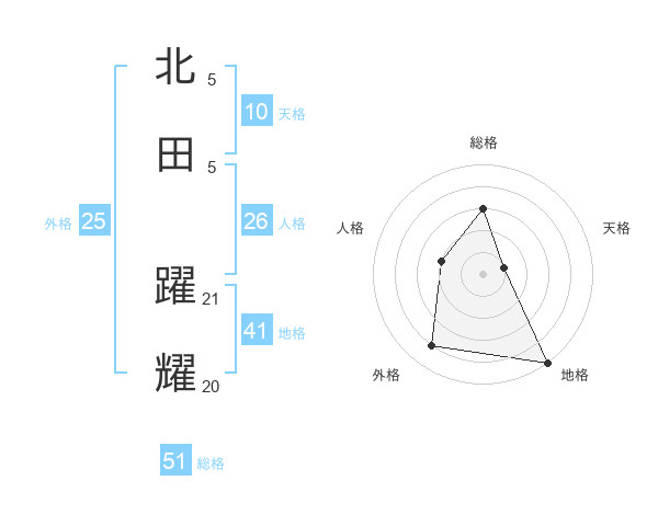 北田 躍耀さんの総格は51画の3点!