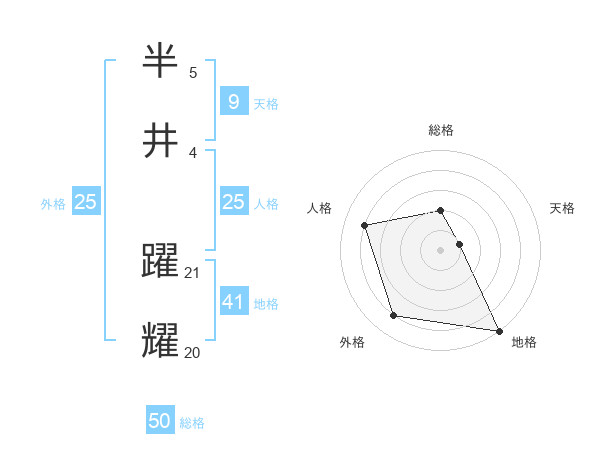 半井 躍耀さんの総格は50画の2点!