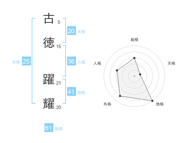 古徳 躍耀さんの地格は41画の5点!