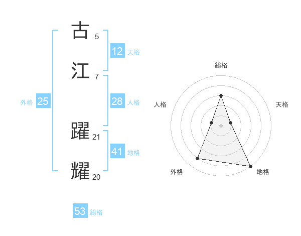 古江 躍耀さんの総格は53画の3点!