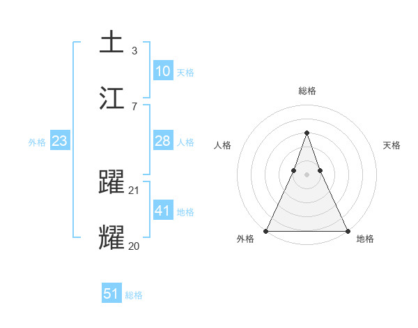 土江 躍耀さんの総格は51画の3点!