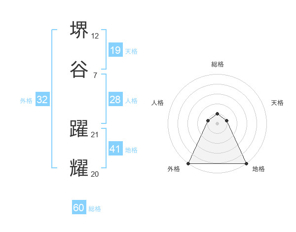 堺谷 躍耀さんを姓名の画数から五運を鑑定
