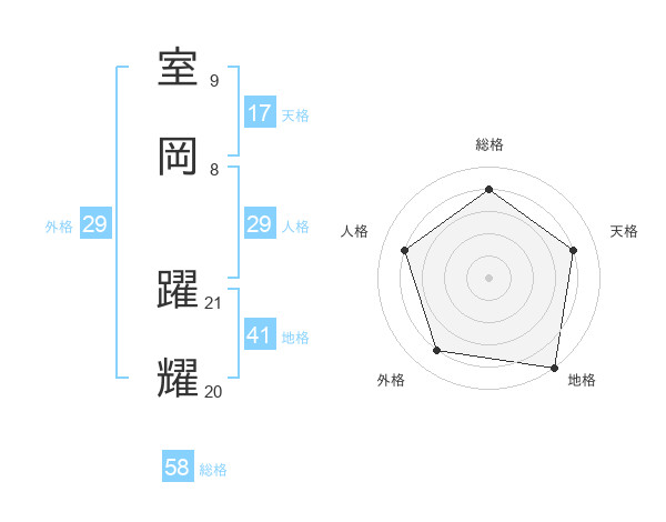 室岡 躍耀さんの総格は58画の4点!