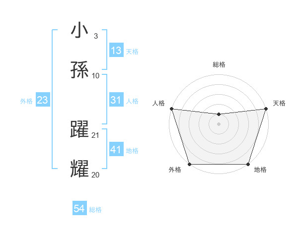 小孫 躍耀さんを姓名の画数から五運を鑑定
