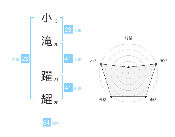 小滝 躍耀さんを姓名の画数から五運を鑑定