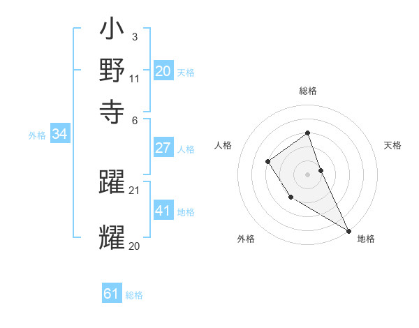 小野寺 躍耀さんの総格は61画の3点!