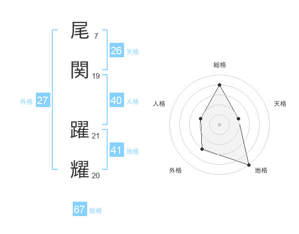 尾関 躍耀さんの総格は67画の4点!