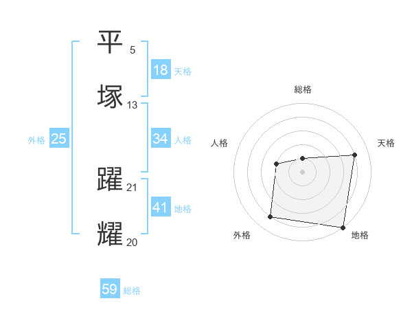 平塚 躍耀さんを姓名の画数から五運を鑑定