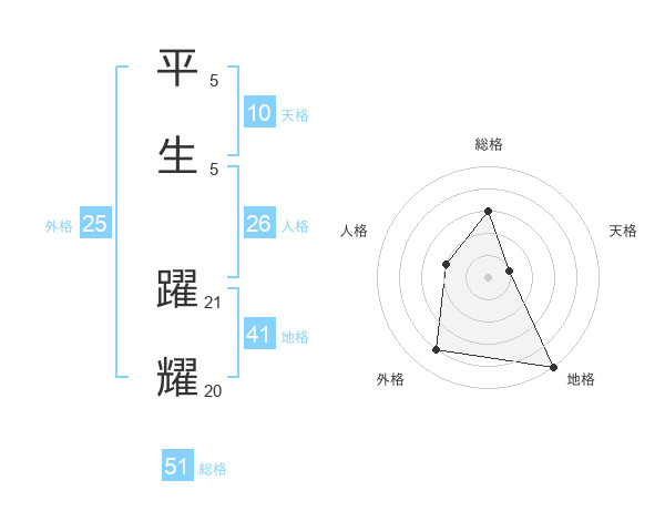 平生 躍耀さんの総格は51画の3点!