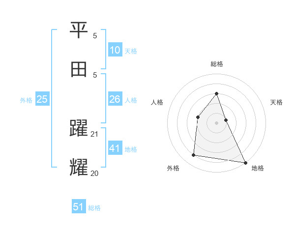 平田 躍耀さんを姓名の画数から五運を鑑定