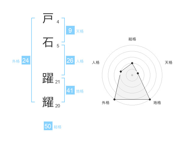 戸石 躍耀さんを姓名の画数から五運を鑑定