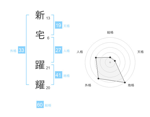 新宅 躍耀さんを姓名の画数から五運を鑑定