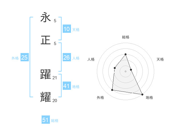 永正 躍耀さんの総格は51画の3点!