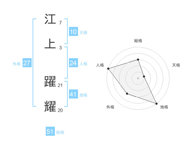 江上 躍耀さんを姓名の画数から五運を鑑定