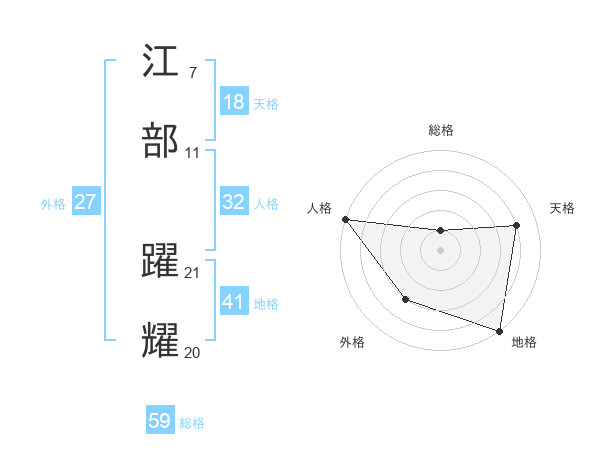 江部 躍耀さんの総格は59画の1点!