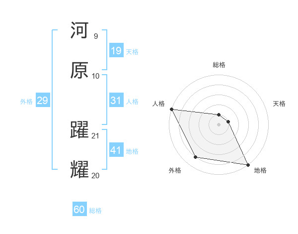 河原 躍耀さんを姓名の画数から五運を鑑定