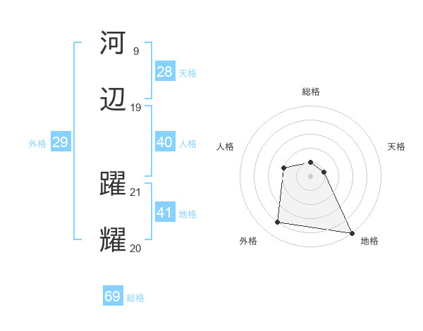 河辺 躍耀さんの総格は69画の1点!