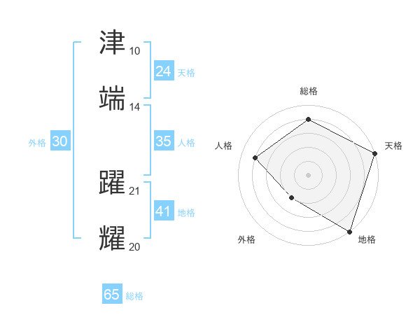 津端 躍耀さんの総格は65画の4点!