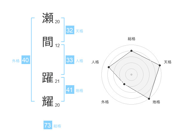 瀬間 躍耀さんを姓名の画数から五運を鑑定