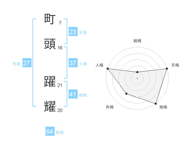 町頭 躍耀さんを姓名の画数から五運を鑑定