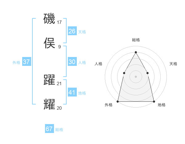 磯俣 躍耀さんの総格は67画の4点!